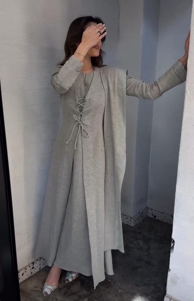 هذا الفستان الأنيق يأتي بلون سلفر  يعكس الفخامة والرقي، مصمم بقصة تبرز جمال القوام. يتميز بقصة كتف غير متماثلة مع تفاصيل على الكتف والمعصم، مما يضفي لمسة راقية. كما يأتي باكمام ساتره  يمنح الفستان مظهرًا فاخرًا وملكيًا.